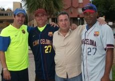 Padilla y Manrique pasado y presente del béisbol cubano han pasado por Barcelona. Triunfaron como jugadores en la Selección Cubana y ahora imparten su magisterio en Italia. En la foto con Ángel Aguado y Josep Juaneda. |