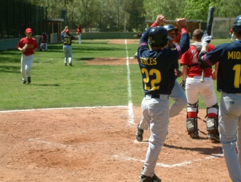 En la primera entrada del primer partido se vio claramente que los culés no habían ido a Valencia a florear y ligaron cinco hits consecutivos incluyendo un cuadrangular de tres carreras de P. Sancho para situar el cinco a cero en el luminoso.