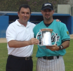 | Lanza Pedro Belmonte y Jordi Juaneda consigue out. | Lanza Leslie Nacar y Néstor Pérez asiste a 1ª logrando el última out del partido y la victoria para Marlins. | Néstor Pérez recoge el trofeo como campeón. | |